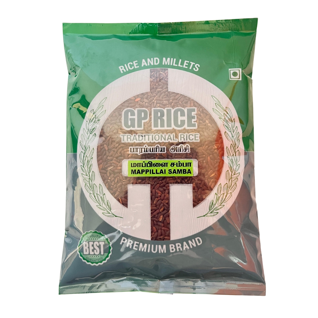 Mappillai Samba Rice, also known as Bridegroom’s Rice, is a traditional Tamil Nadu red rice variety famous for its strength and stamina-boosting properties. Naturally grown and rich in iron, fiber, and antioxidants, this heritage rice helps improve immunity, build muscle strength, and enhance overall health. It’s an excellent choice for people with diabetes and those seeking natural, chemical-free nutrition. Mappillai Samba is perfect for idli, dosa, pongal, and steamed rice — offering authentic flavor and wholesome nutrition in every meal.